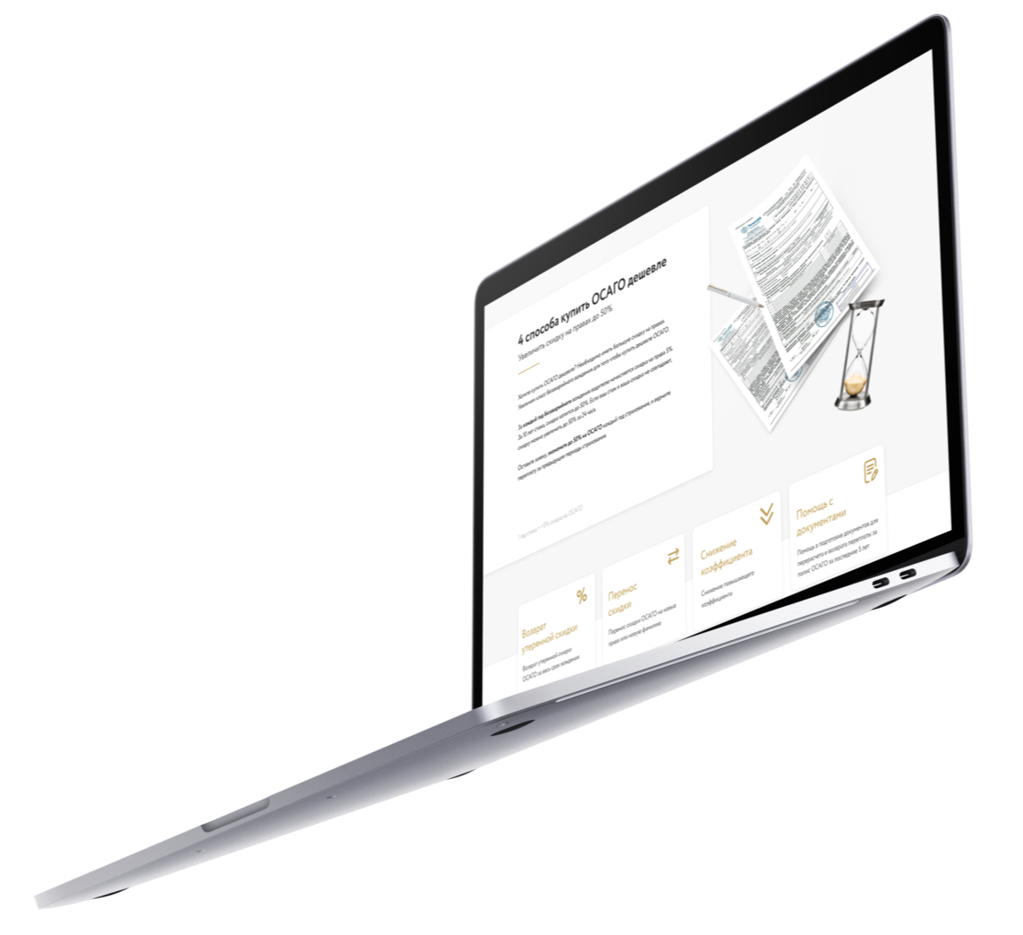 Оставьте заявку, экономьте до 50% на ОСАГО каждый год страхования, и верните переплату за предыдущие периоды страхования.